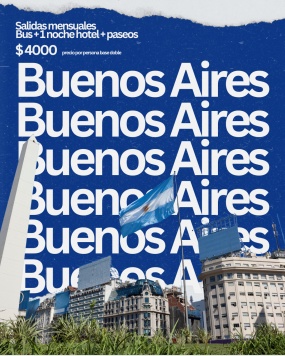 $ 4000 DESTACADA OPORTUNIDAD SALIDAS MENSUALES PROMO ESCAPADA A BUENOS AIRES Salida: 14 MARZO - 18 ABRIL - 9 MAYO- 23 MAYO- 13 JUNIO PAQUETES TERRESTRES